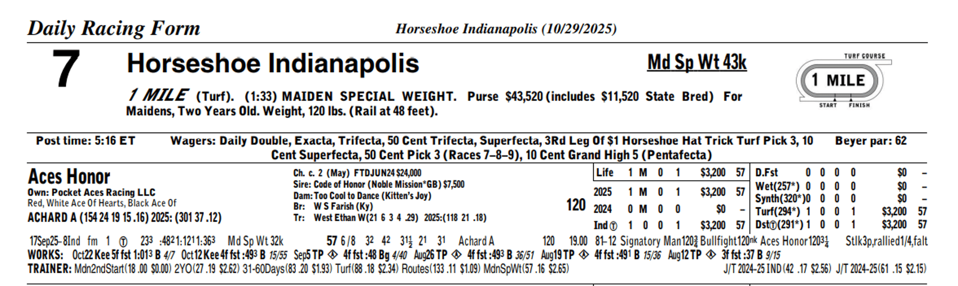 Aces Honor is currently training at Turfway Park in Florence, Kentucky.
